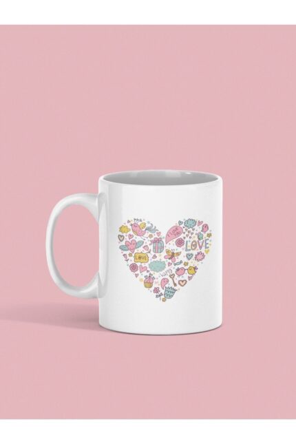 Kalp Baskılı Kupa Beyaz Porselen Dijital