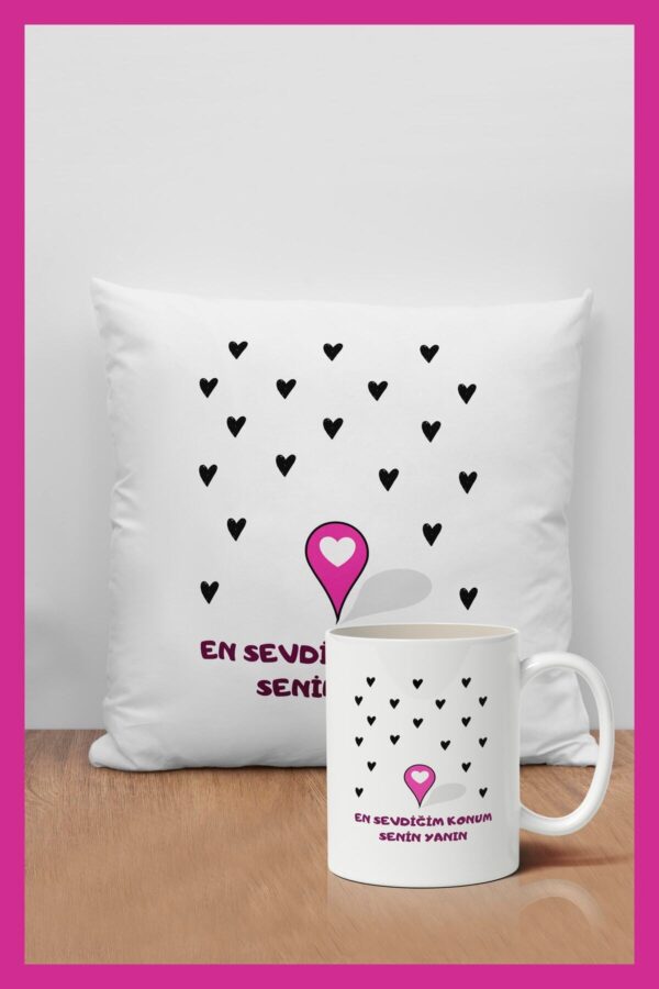 Sevgiliye Hediye Konum Baskılı Dekoratif Hediyelik Yastık Ve Kupa Seti
