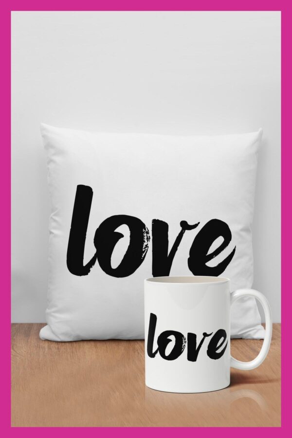 Love Detaylı Baskılı Dekoratif Hediyelik Yastık Ve Kupa Seti