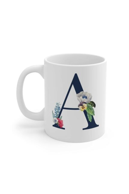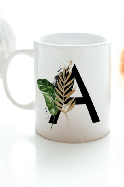 A Harfi Baskılı Çiçek Desenli Dekoratif – Baş Harf Baskılı Kupa Bardak – A Harfli Kahve Bardağı