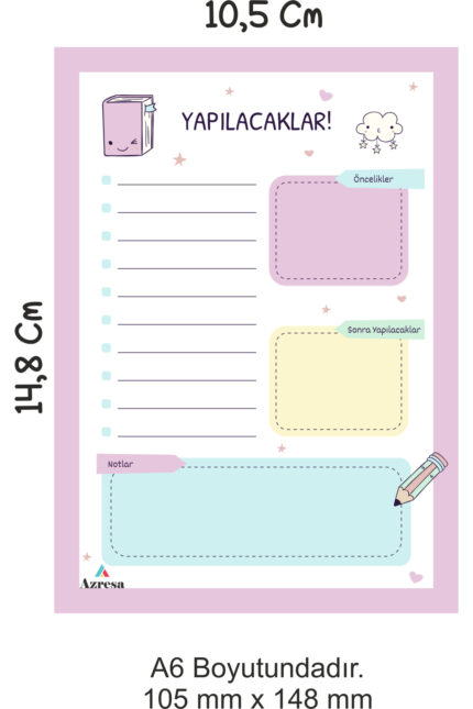 Günlük Planlayıcı, Yapılacaklar Listesi To do List – A6 – 10.5 mm x 14.8 mm