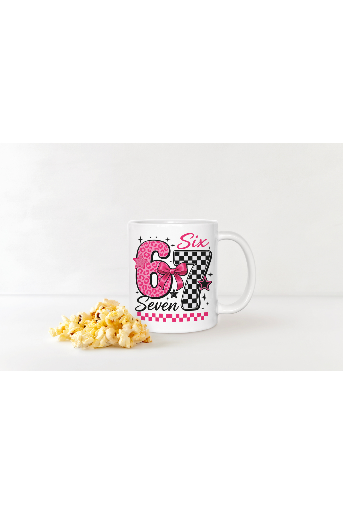 67 Yazılı Pembe Leopar ve Fiyonklu Kupa – Popüler Preppy Aesthetic Bardak