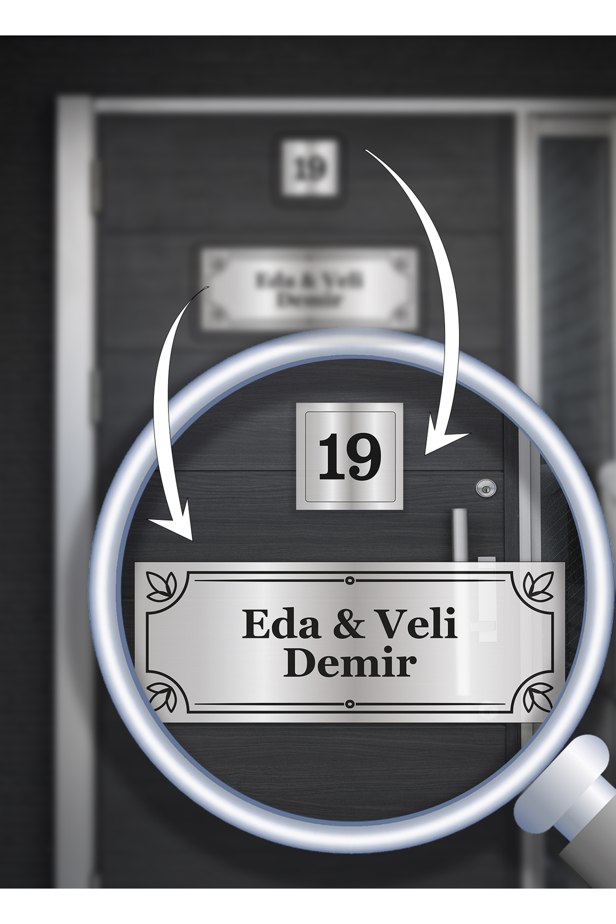 Alüminyum Kapı İsimliği | Kişiye Özel | 15×5 cm İsim + 5×5 cm Numara | Zarif Desenli