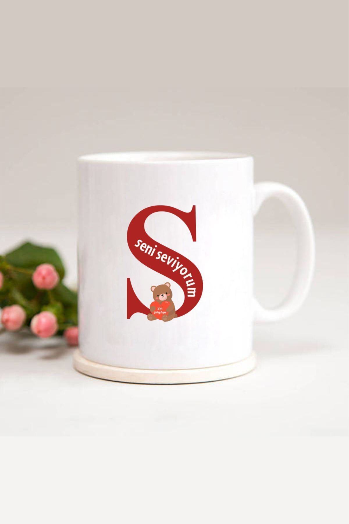 Ayıcıklı S Harfli Baskılı Kupa Bardak