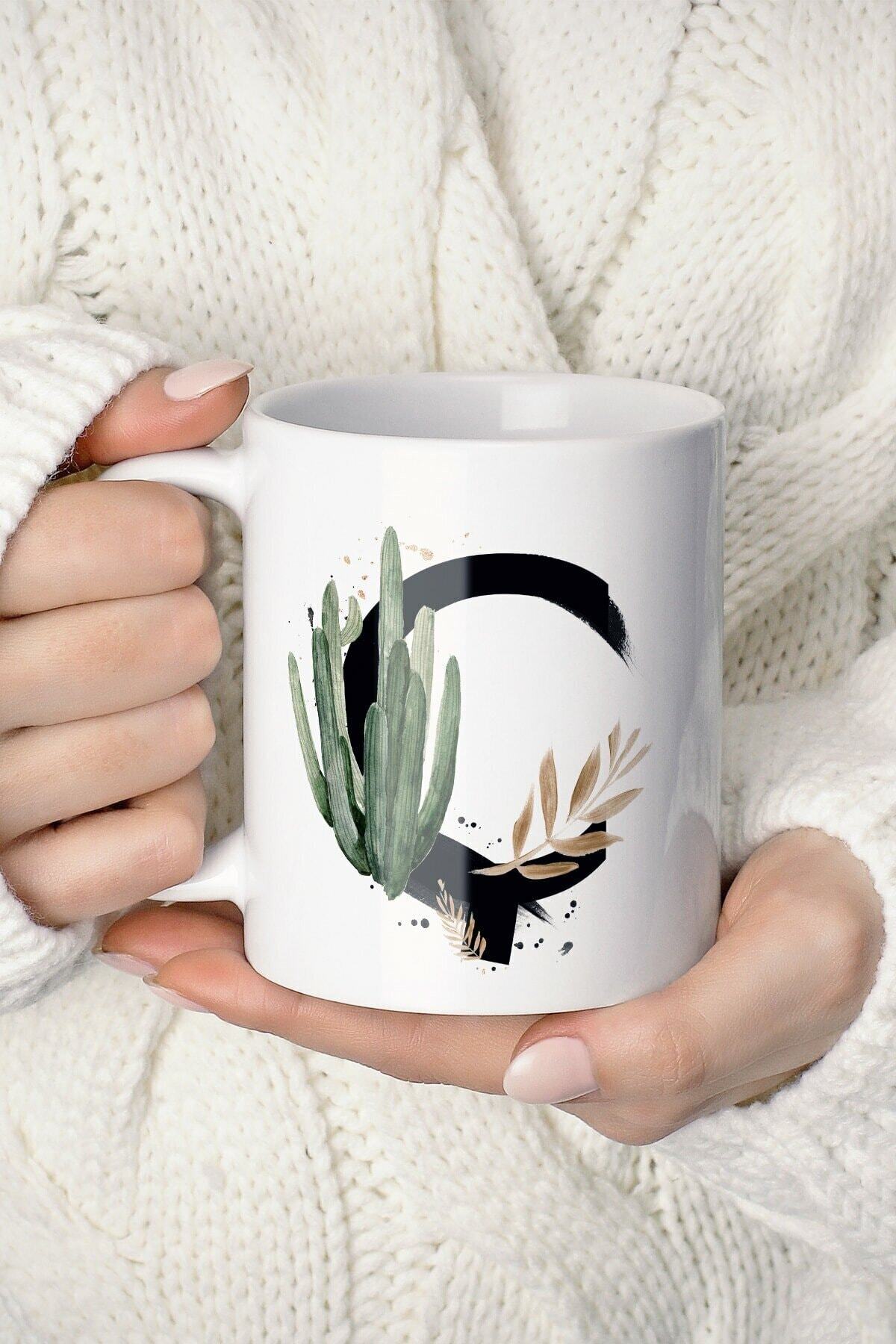 Beyaz Ç Harf Baskılı Tropikal Koleksiyon Porselen Kupa Bardak
