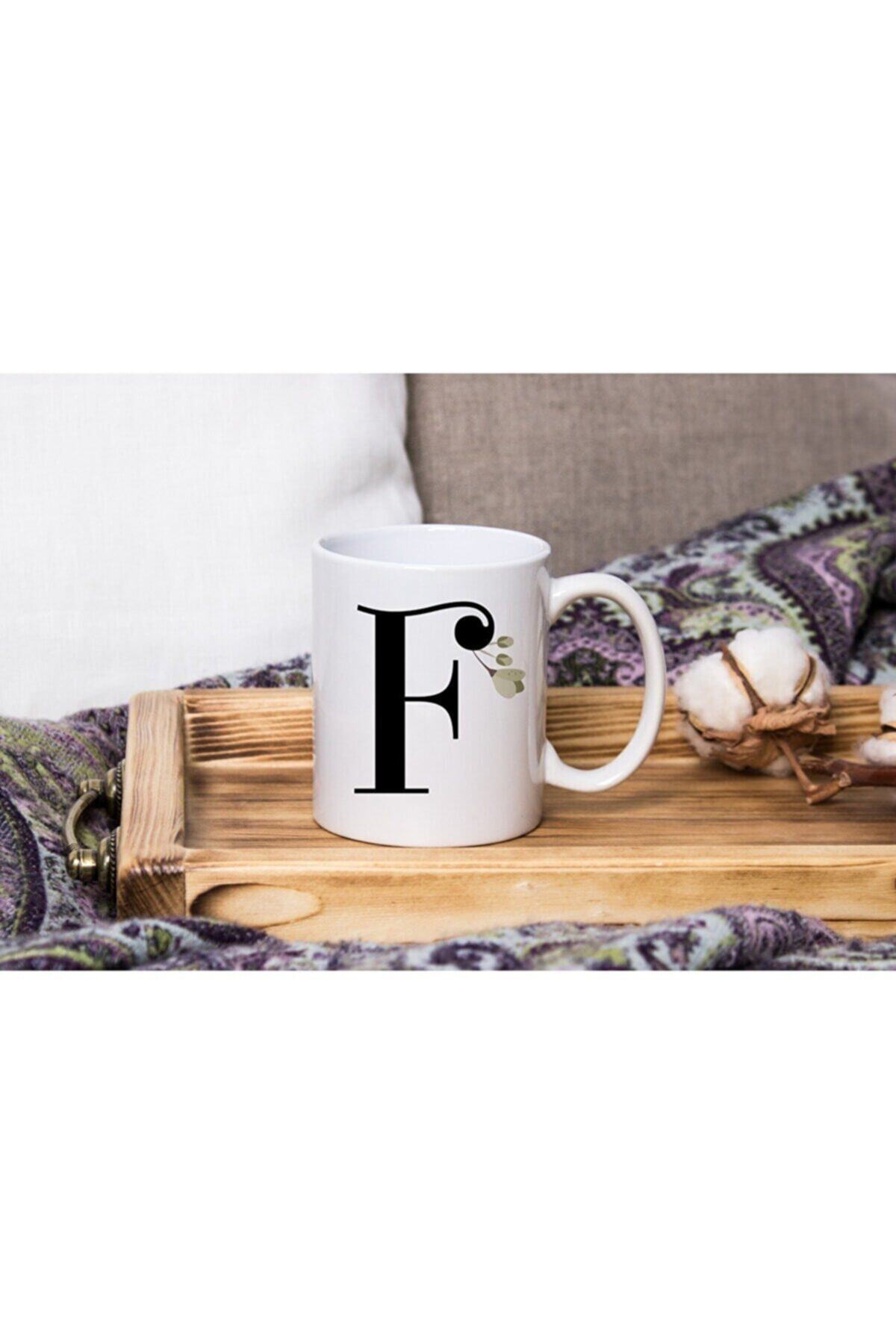 Beyaz Çiçekli F Harfli Beyaz Porselen Kupa Tfbyz-07