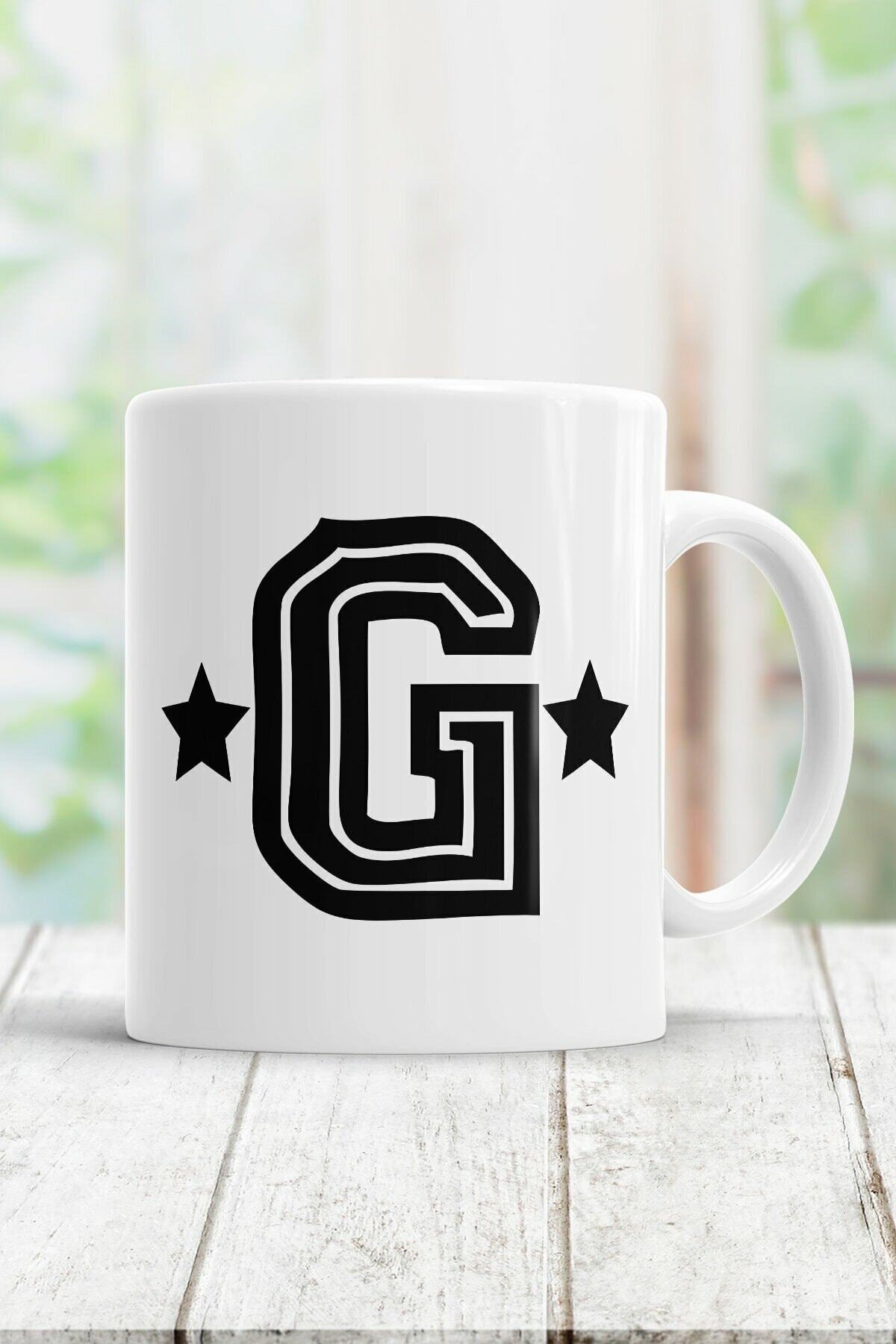 Beyaz G Harfi Baskılı Kupa Bardak