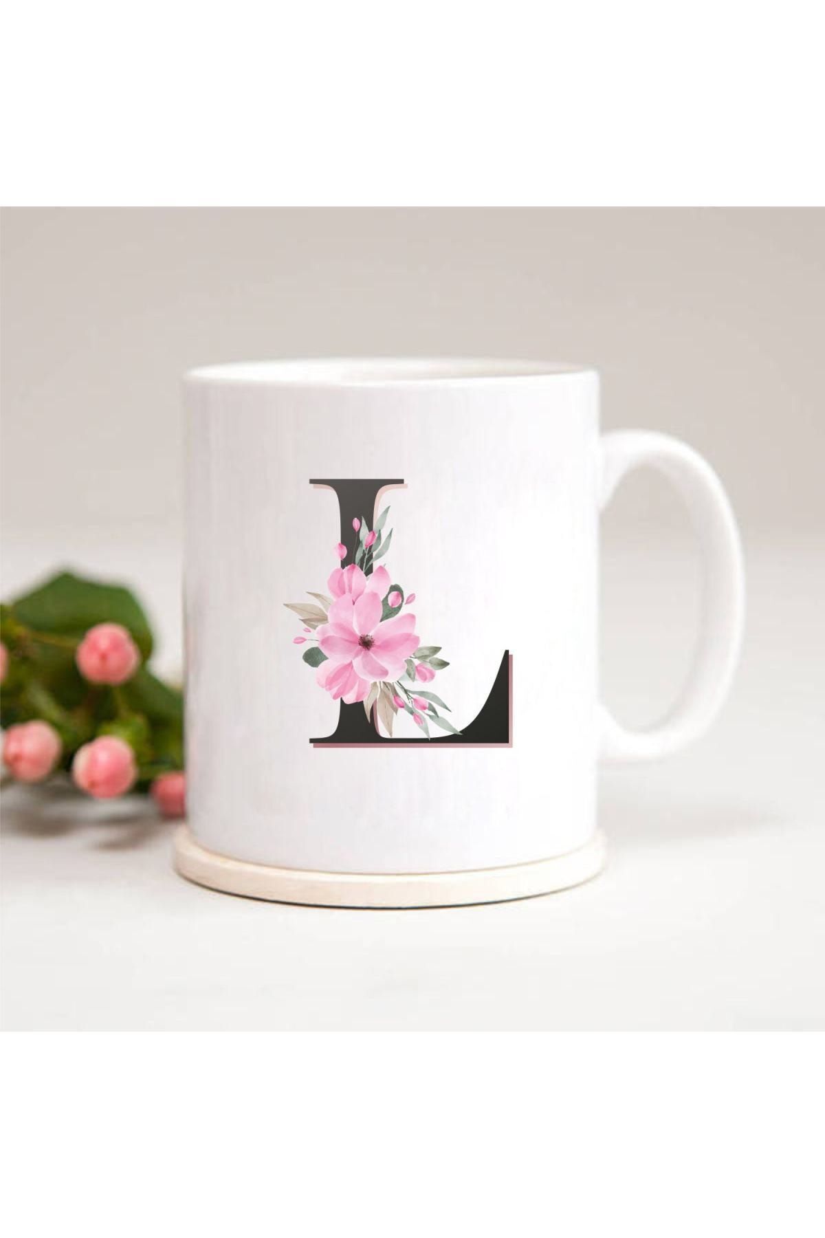 Beyaz L Harfli Baskılı Kupa Bardak