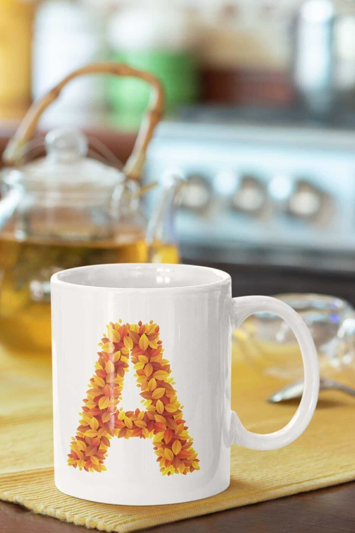 Beyaz Sarı Yapraklı A Harfi Baskılı Porselen Kupa Bardak