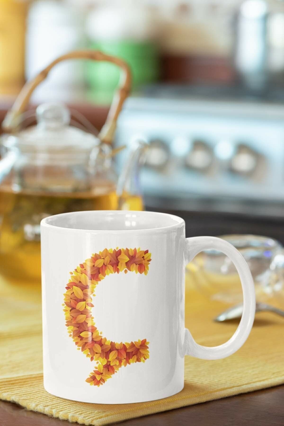 Beyaz Sarı Yapraklı Ç Harfi Baskılı Porselen Kupa