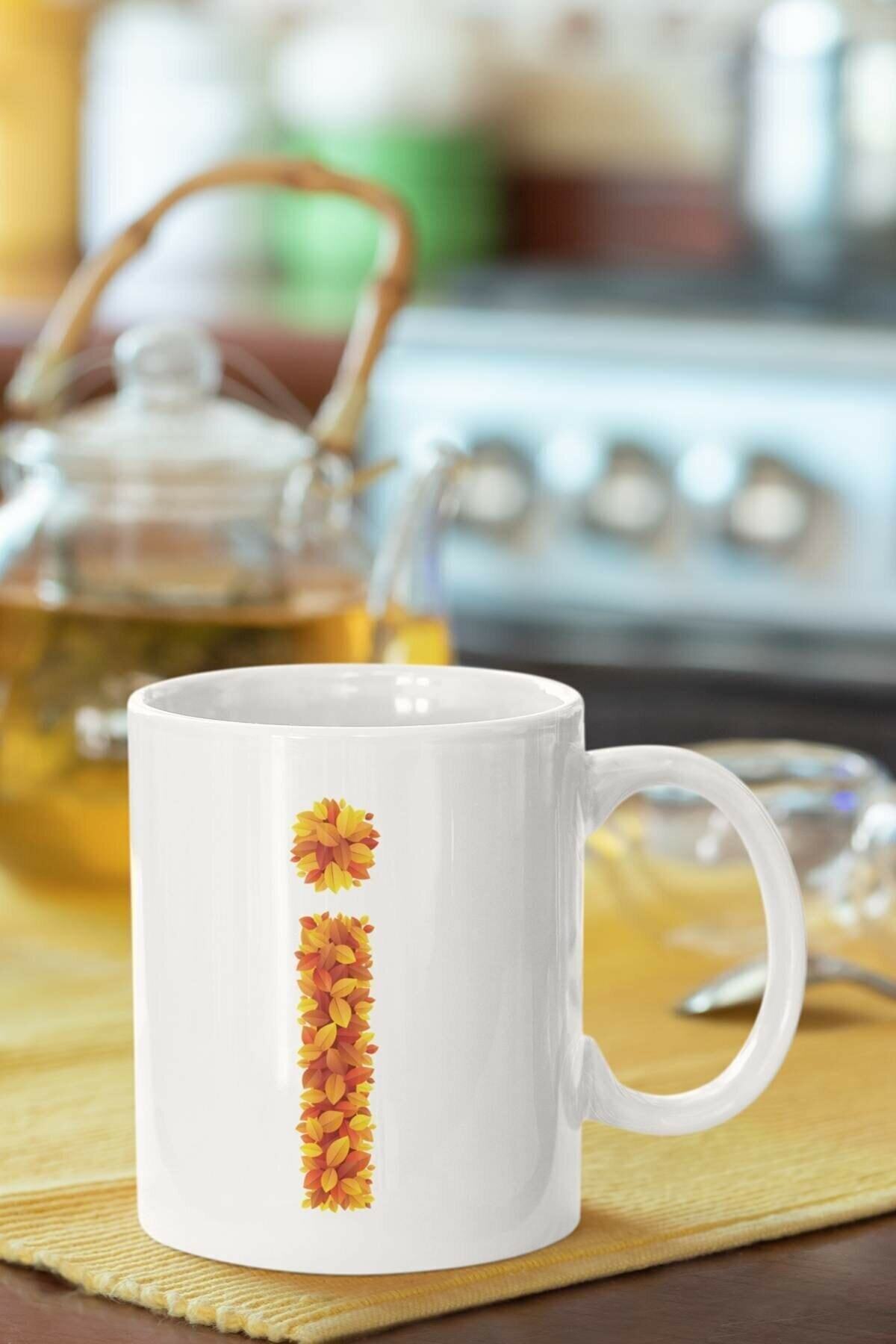 Beyaz Sarı Yapraklı I Harfi Baskılı Porselen Kupa