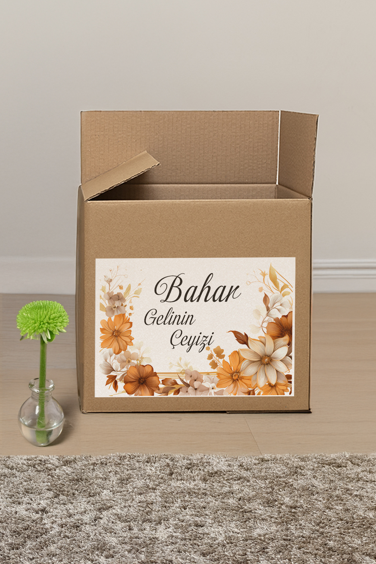 Çeyiz etiketi Kahverengi Çiçek Desenli Etiket – 20’li