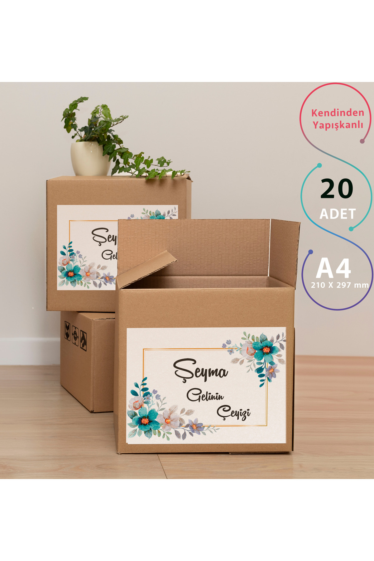Çeyiz Kutusu Etiketleri – A4 ve Kişiye Özel * Mavi Çiçekli