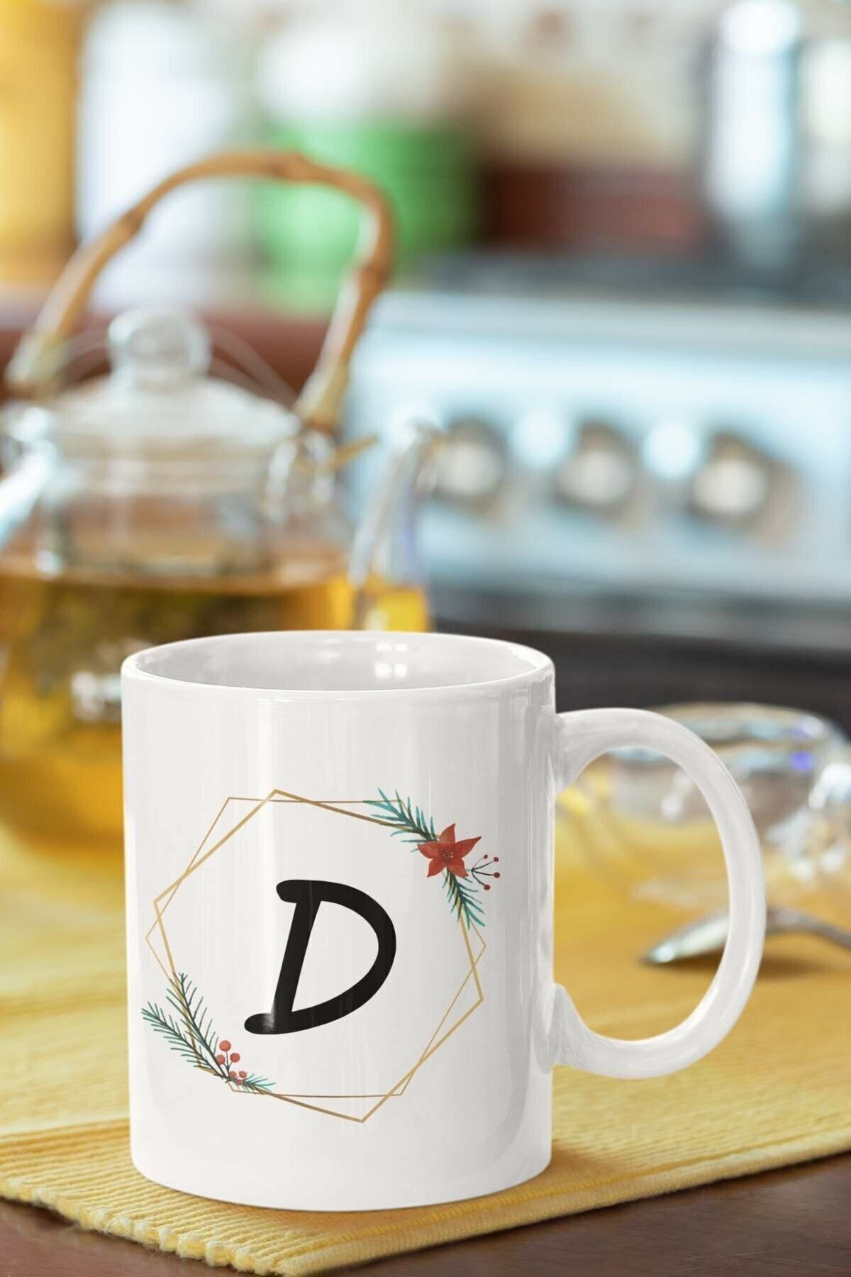 D Harfi Baskılı Porselen Kupa Bardak