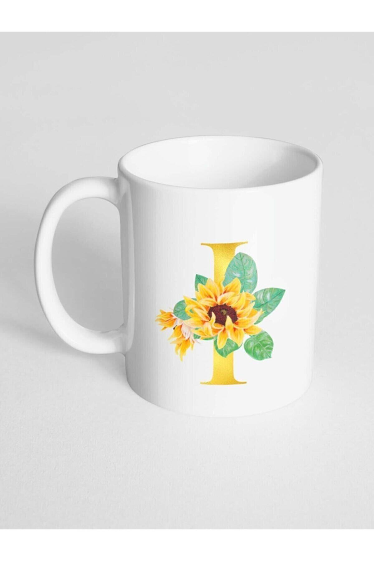 I Harfi Baskılı Çiçek Desenli Dekoratif – Baş Harf Baskılı Kupa Bardak