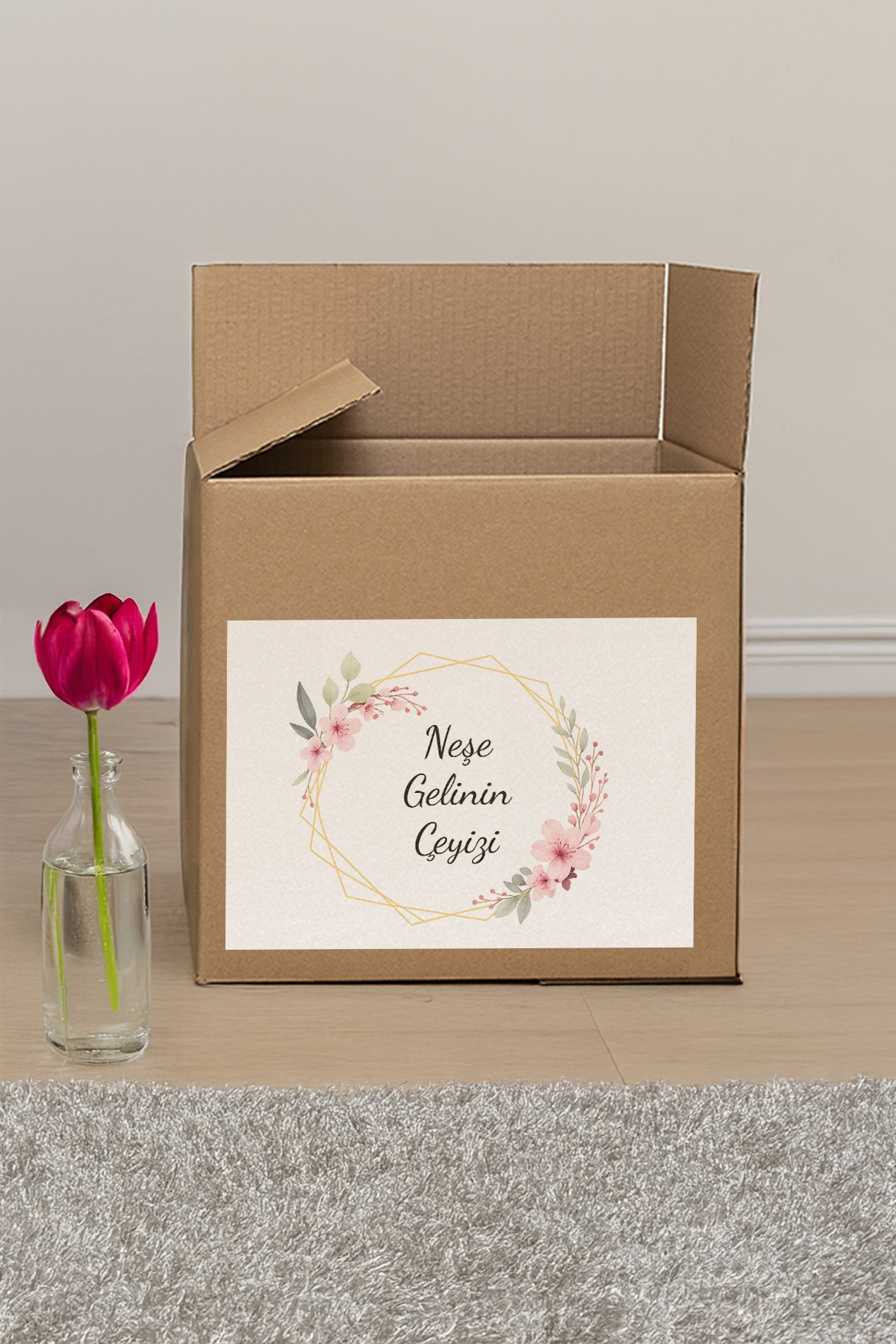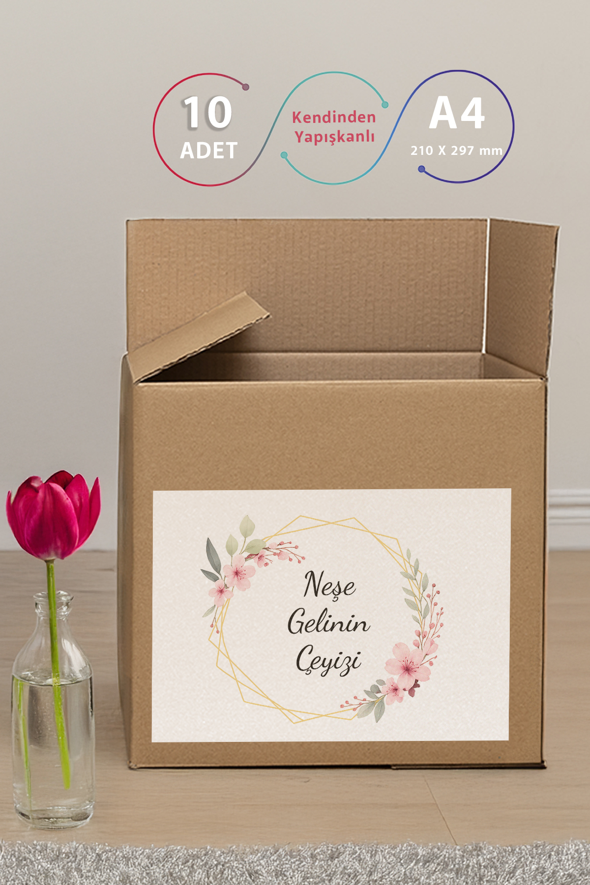 Kişiye Özel Çeyiz Kolisi Etiketi – Kendinden Yapışkanlı A4 – 10’lu Paket – çiçek tasarım