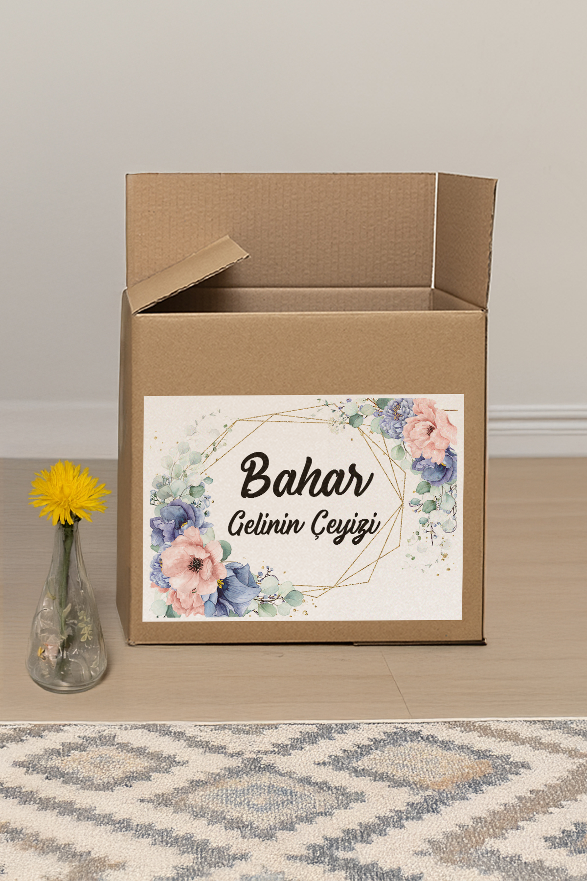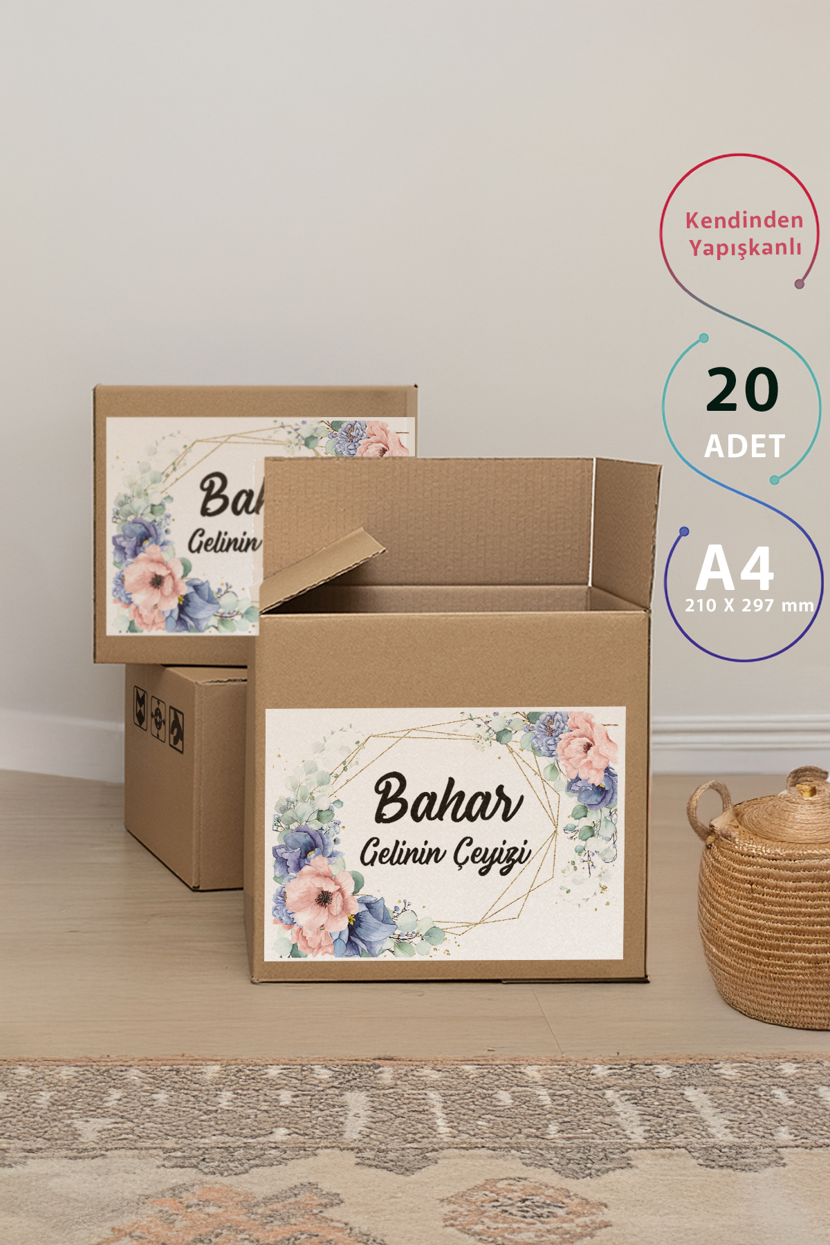 “Kişiye Özel Çiçek Desenli Çeyiz Etiketi – Kendinden Yapışkanlı – 20 Adet