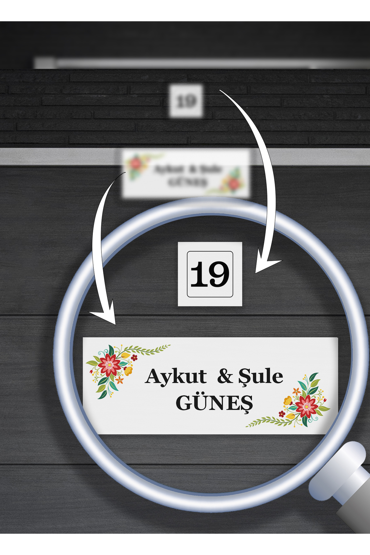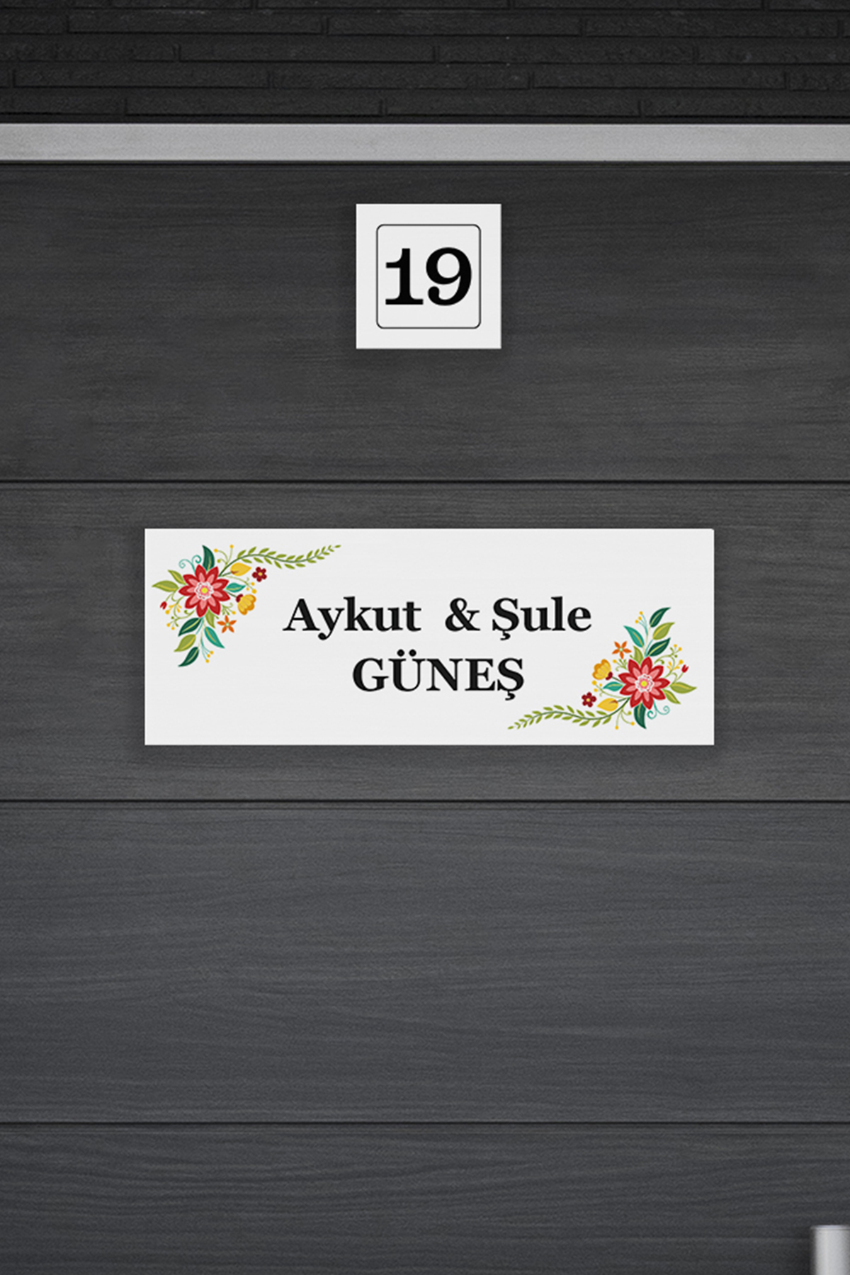 Kişiye Özel Çiçek Desenli Metal Kapı İsimliği ve Kapı Numarası Seti | Bahar Temalı