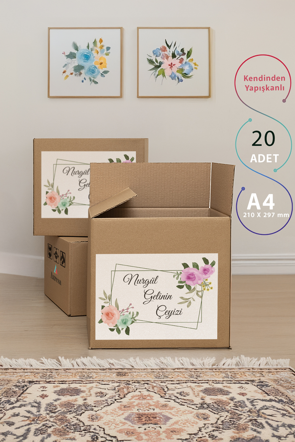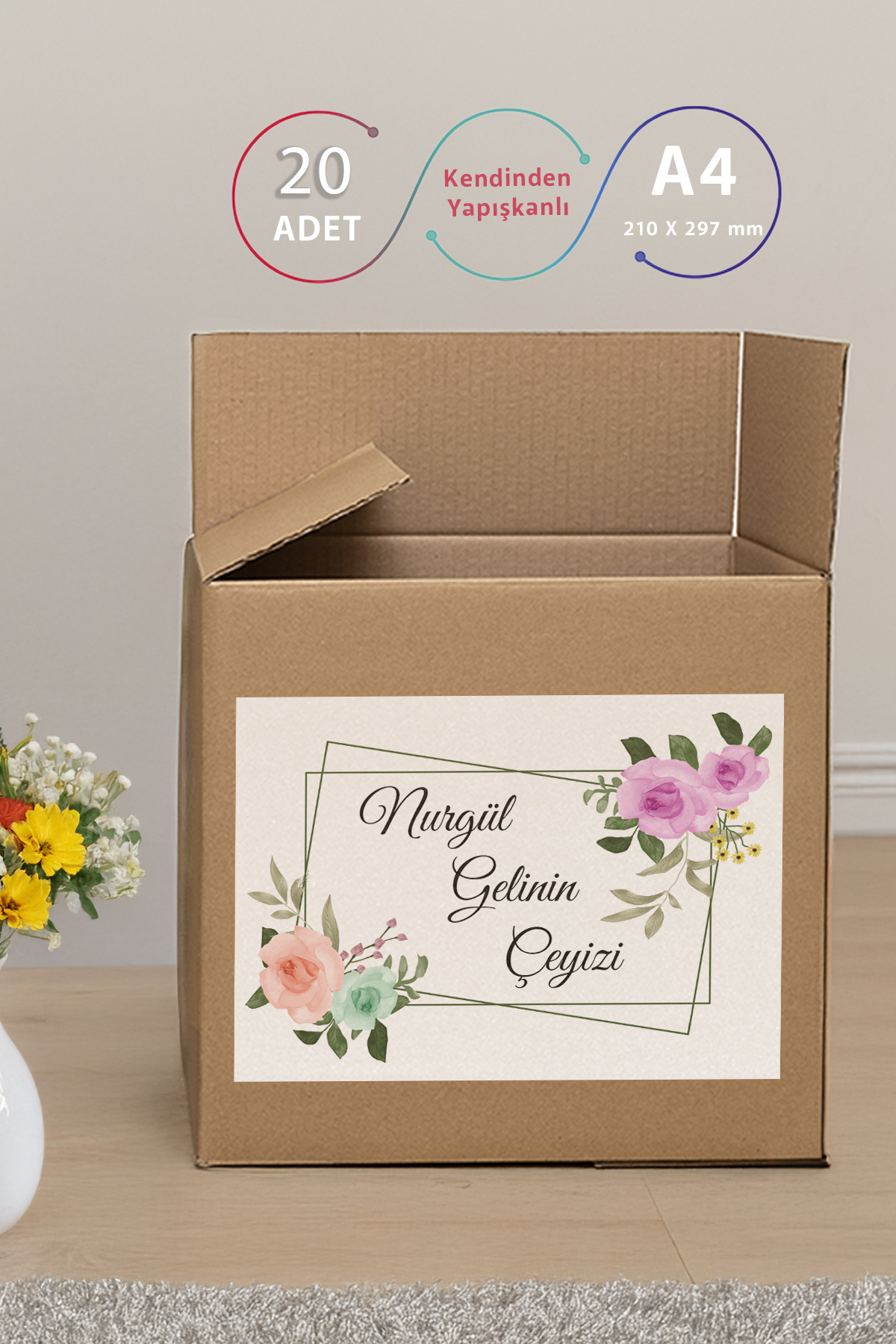 Kişiye Özel İsimli Çeyiz Kolisi Etiketi – 20 Adet A4 Kendinden Yapışkanlı