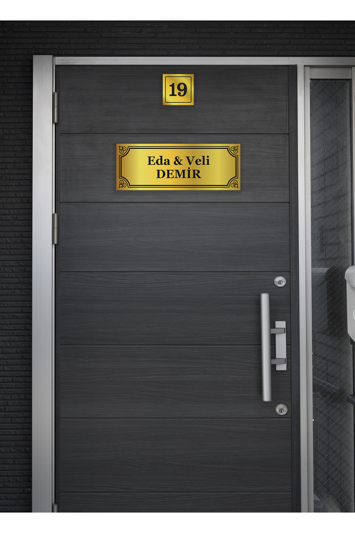 Kişiye Özel Kapı Isimliği 2li Set Geometrik Çerçeveli Tasarım | Isim Ve Numara