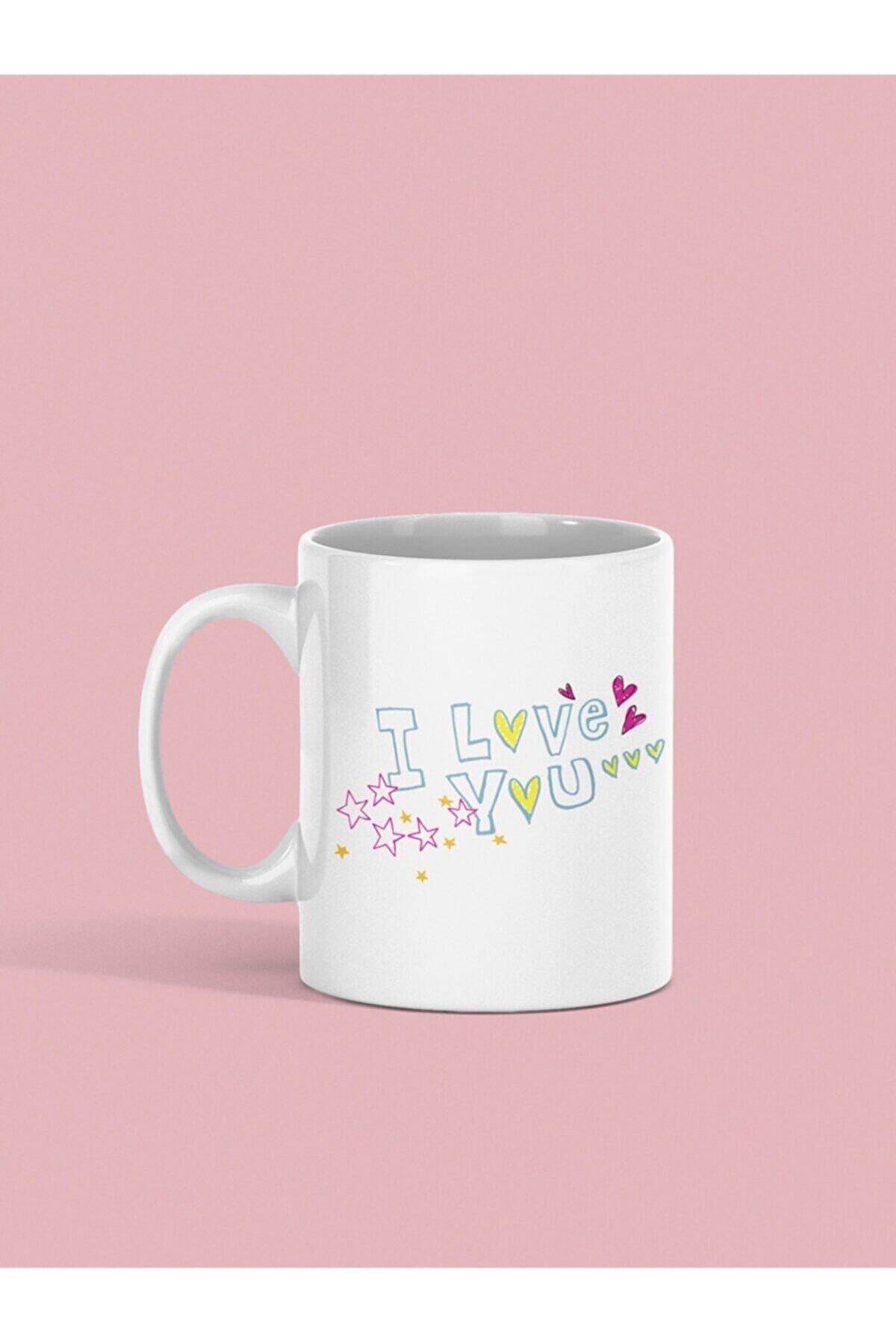 Love You Yazı Baskılı Kupa Beyaz Porselen