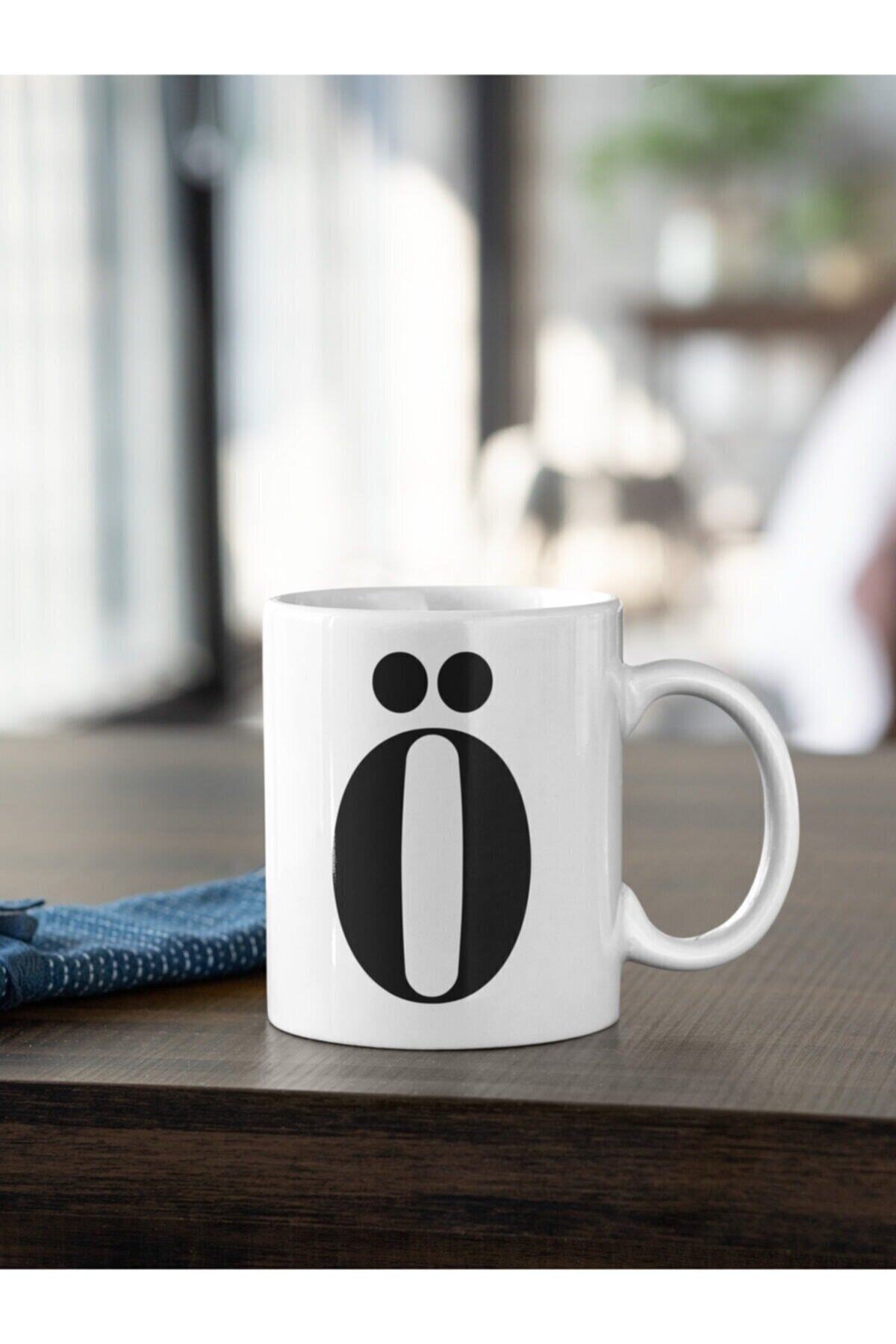 Ö Harfi Siyah Baskılı Kupa Beyaz Porselen