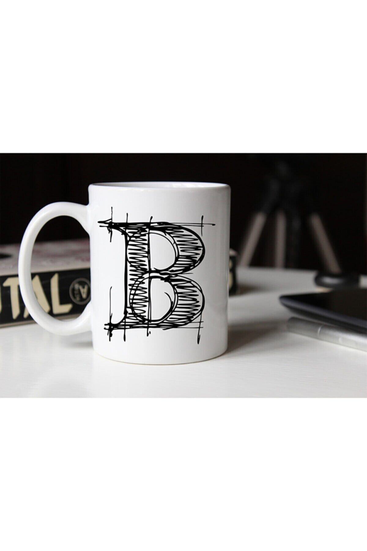 Özel Çizim B Harfli Porselen Kupa Tfshr-02