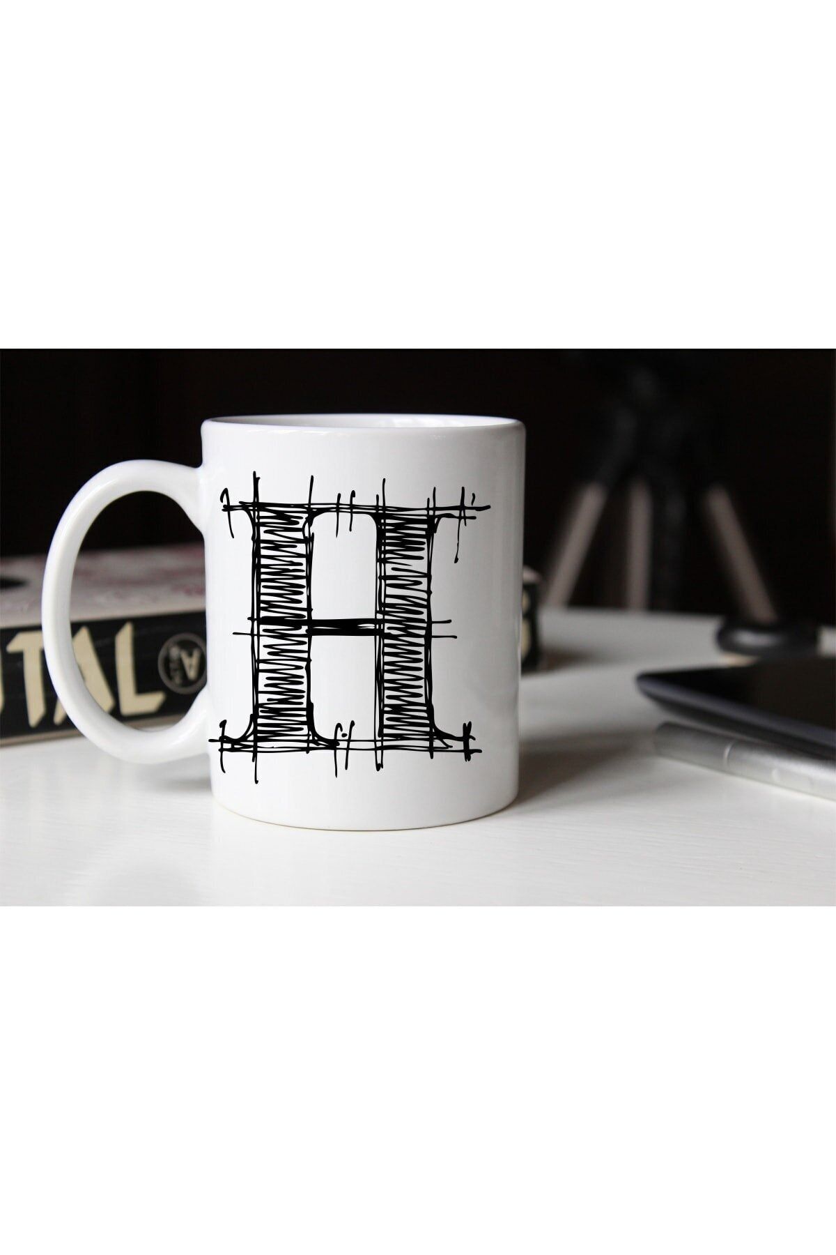Özel Çizim H Harfli Porselen Kupa Tfshr-09