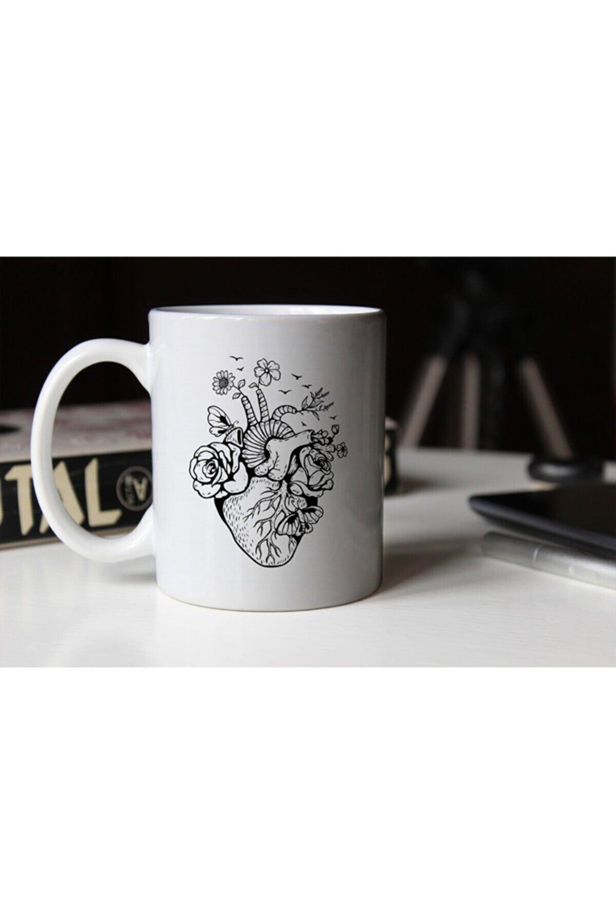 Özel Çizim Kalp Temalı Beyaz Kupa 02 Tfc-19