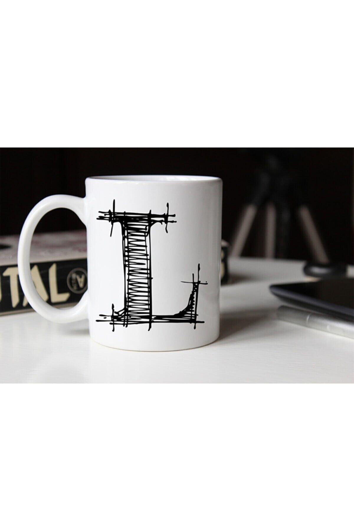 Özel Çizim L Harfli Porselen Kupa Tfshr-14