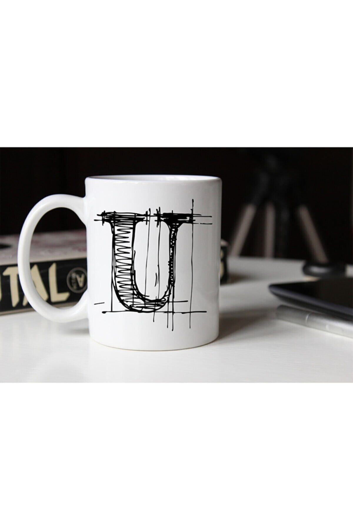 Özel Çizim U Harfli Porselen Kupa Tfshr-24