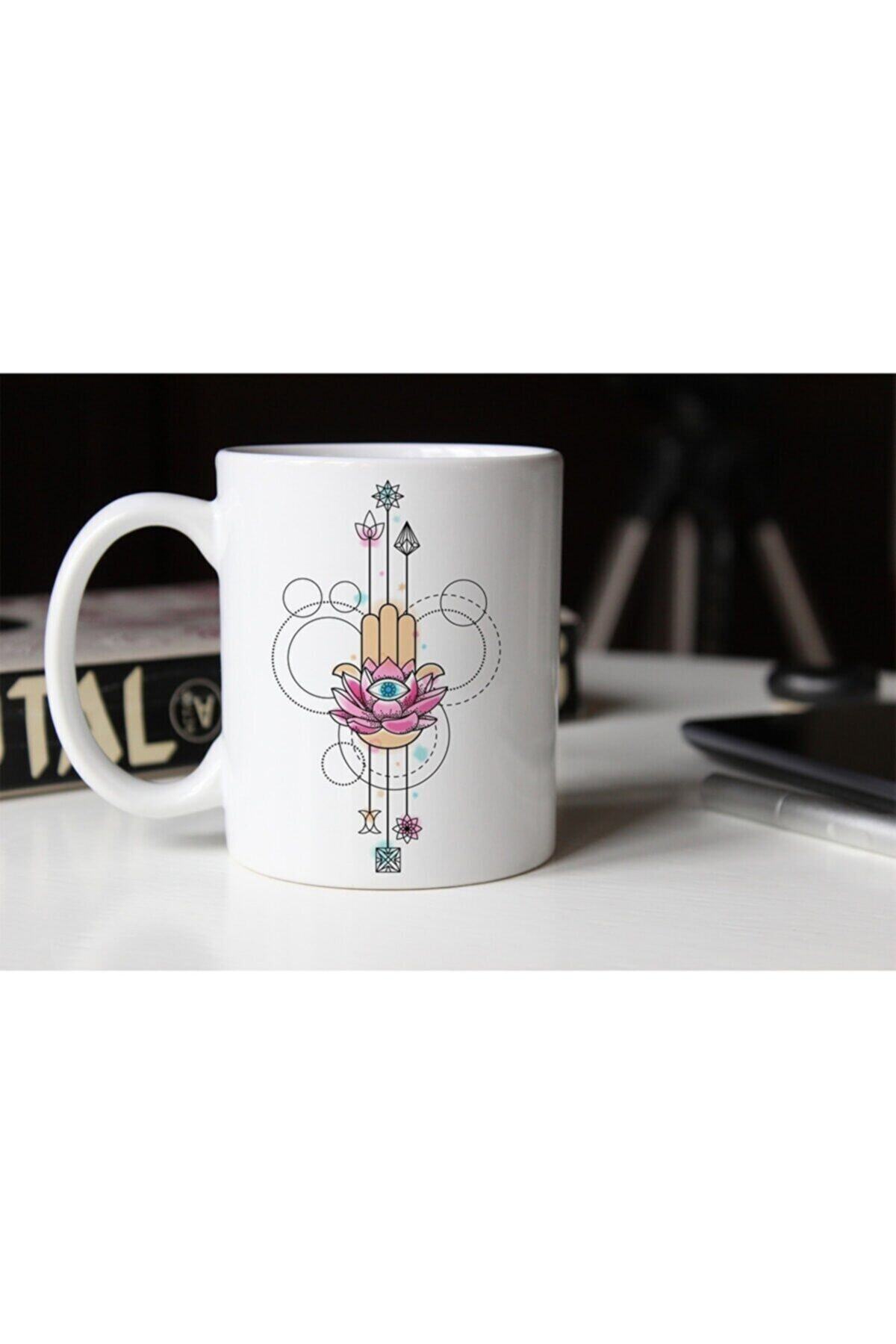 Özel Tasarım Çiçekli Göz Baskılı Porselen Kupa Bardak Tfkp