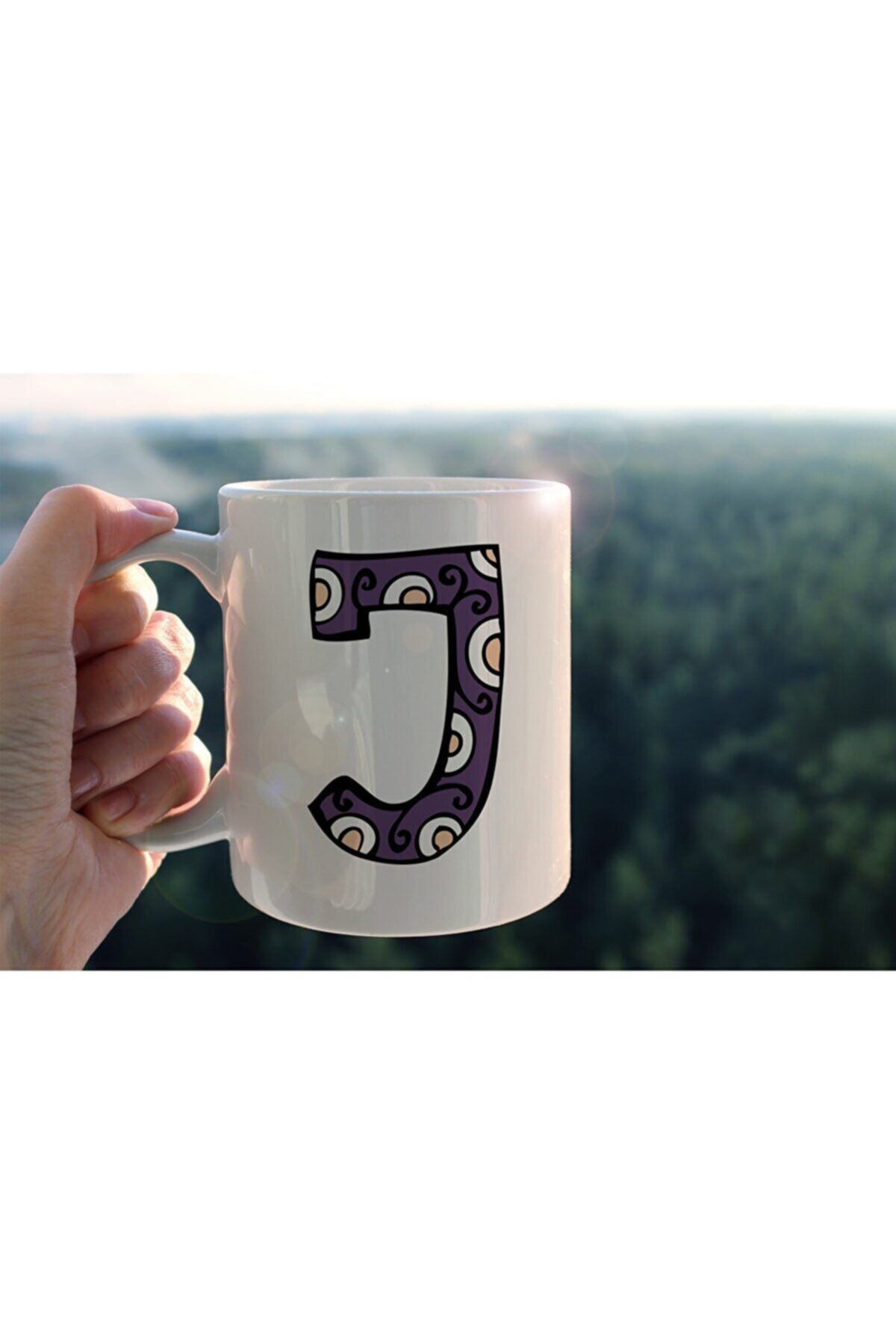 Özel Tasarım J Harfli Porselen Kupa Tfhr-12
