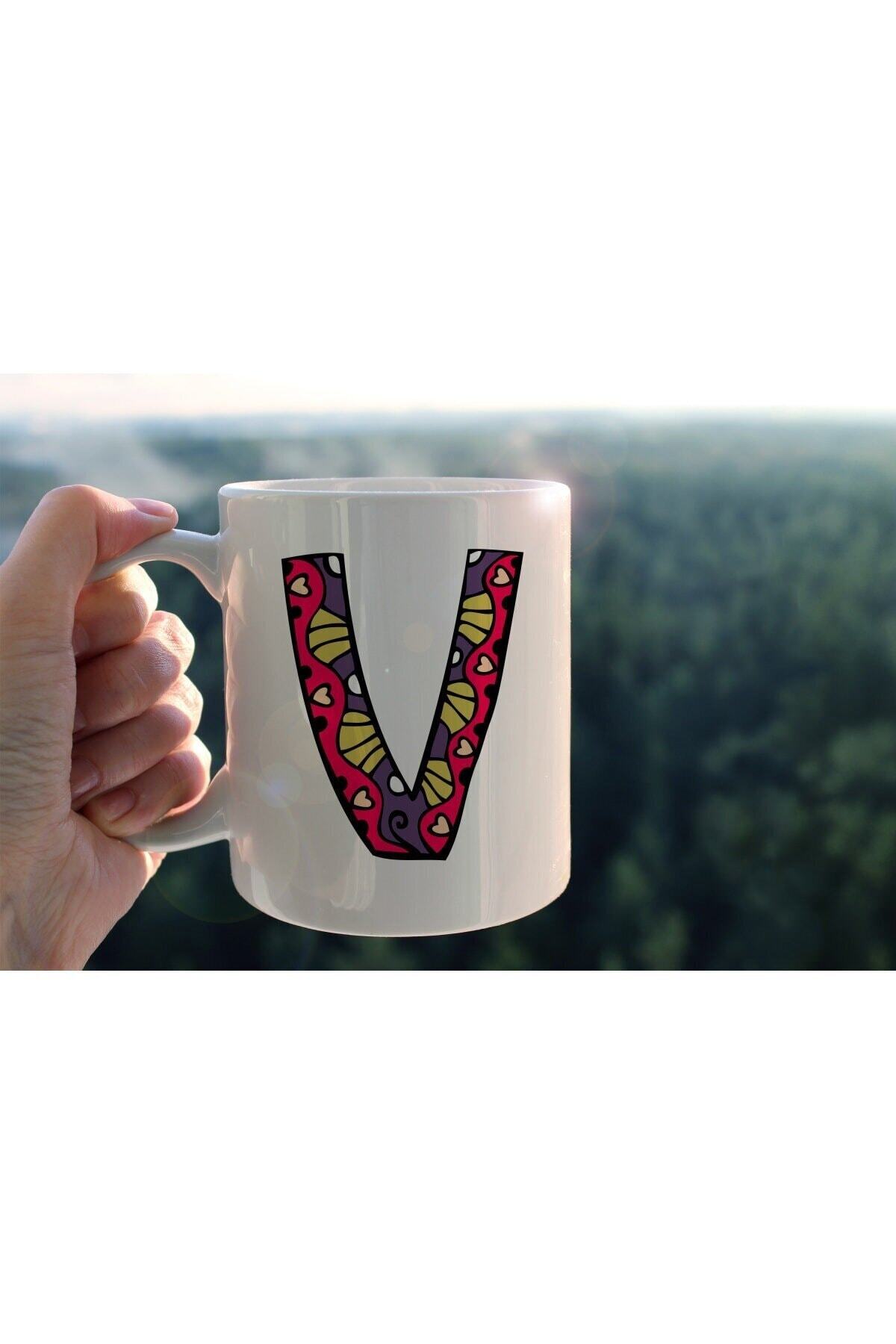 Özel Tasarım V Harfli Porselen Kupa Tfhr-26