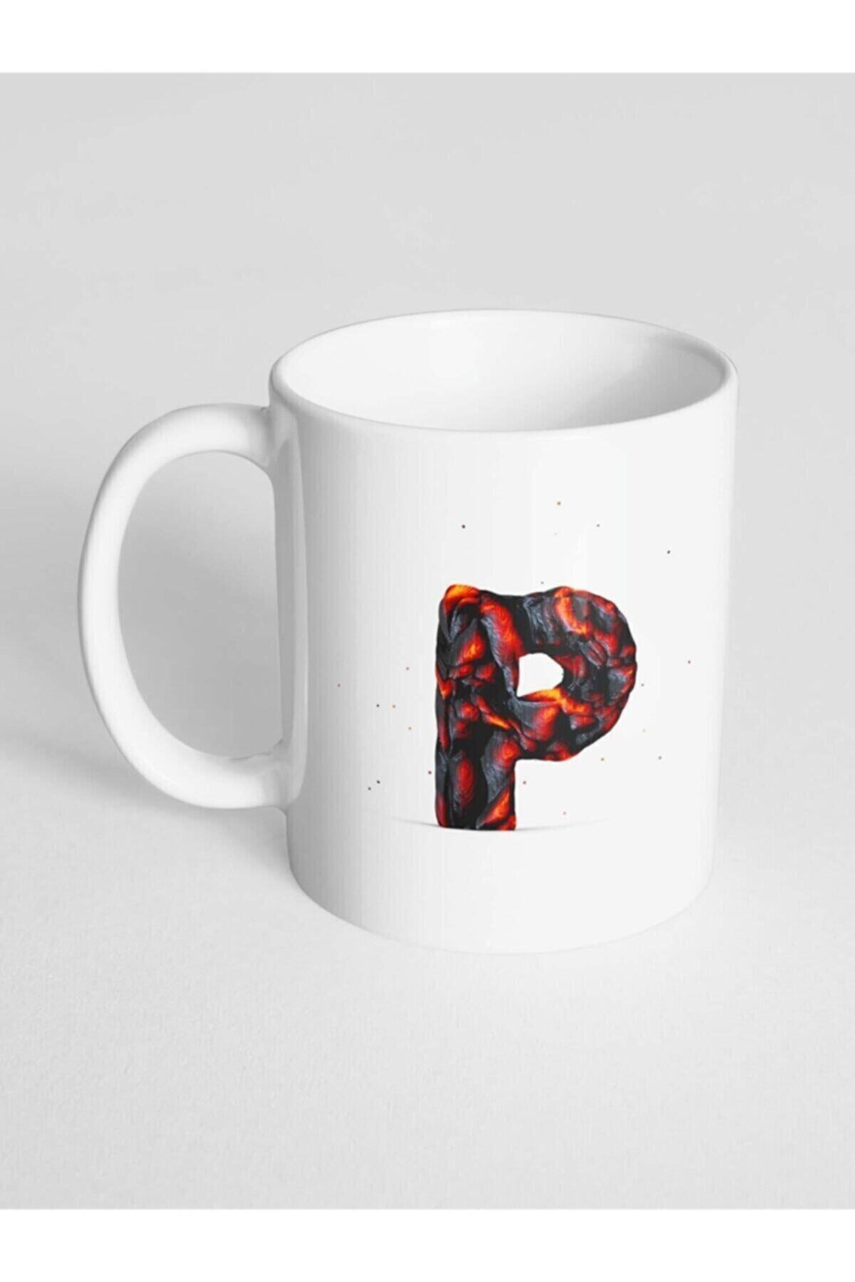 P Harfi Baskılı Kor Alevli Desenli Dekoratif – Baş Harf Baskılı Kupa Bardak