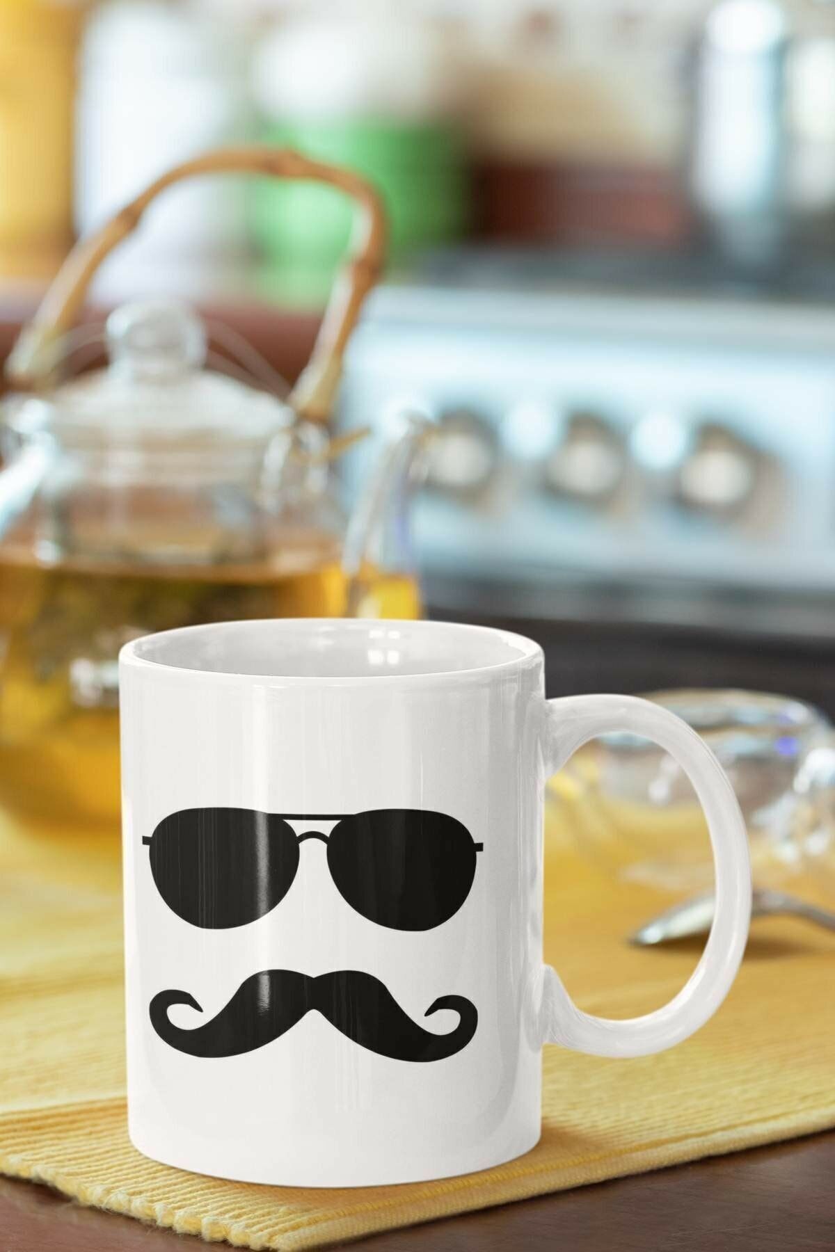 Pala Bıyıklı Baskılı Porselen Kupa Bardak
