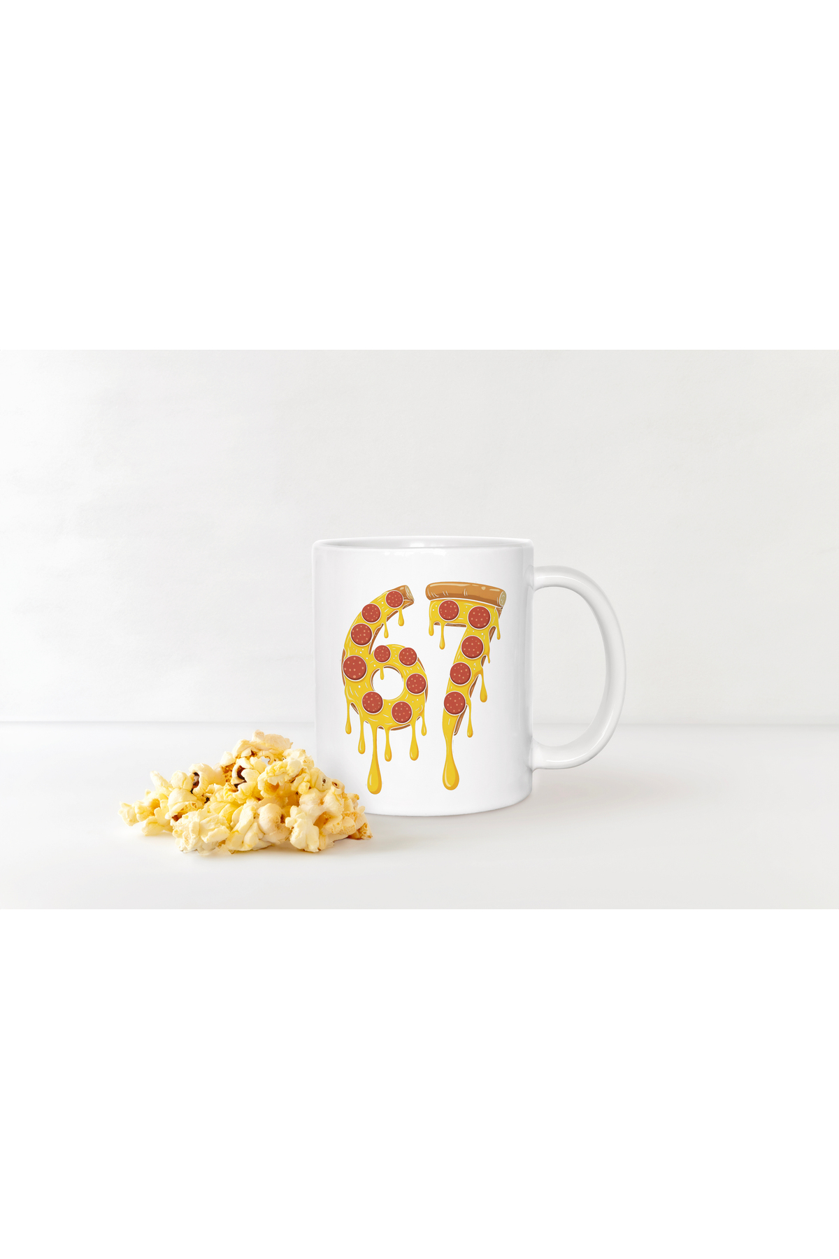Pizza Temalı 67 Yazılı Kupa – Erimiş Peynir ve Pepperoni Desenli Porselen Bardak