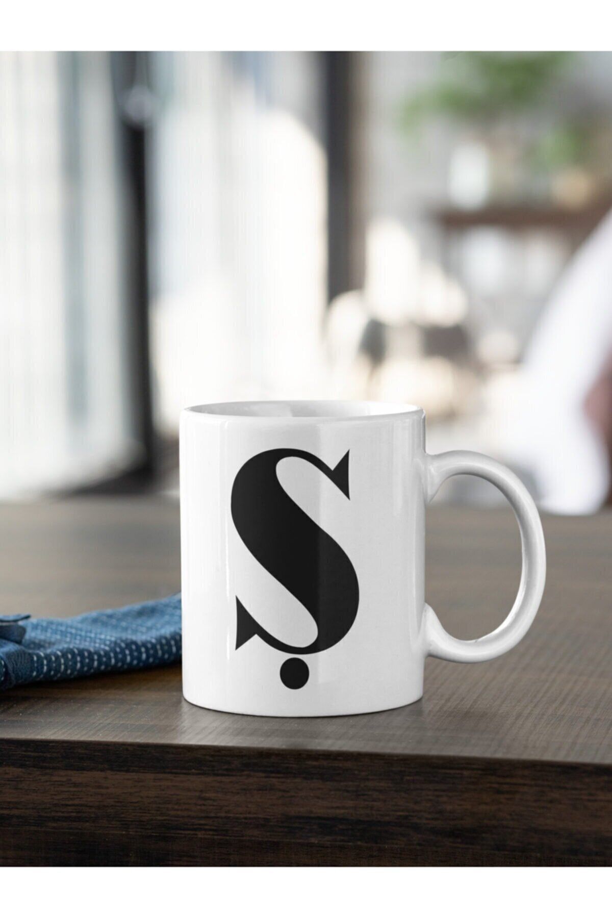 Ş Harfi Siyah Baskılı Kupa Beyaz Porselen