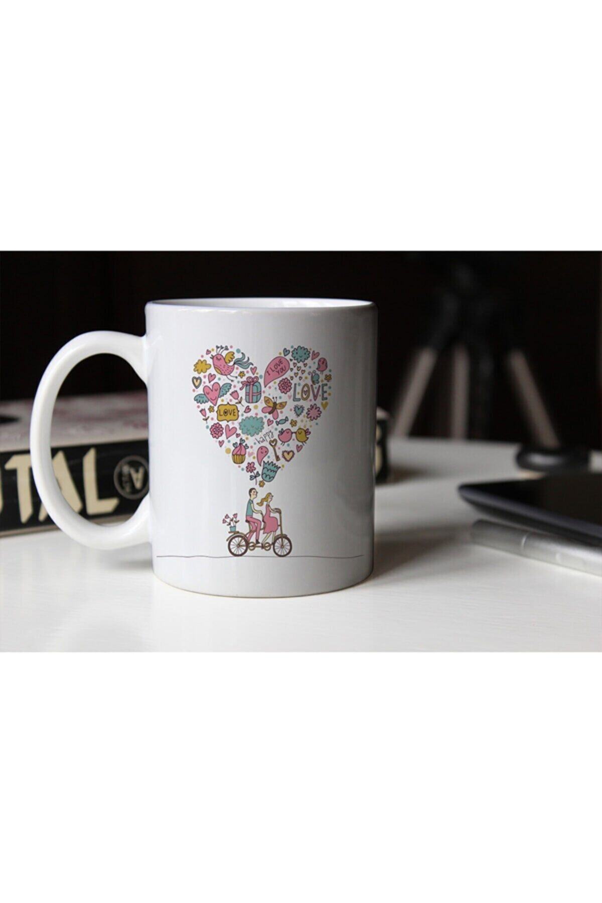 Sevgililer Gününe Özel Bisiklen Süren Çift Temalı Temalı Beyaz Kupa Tfc-06