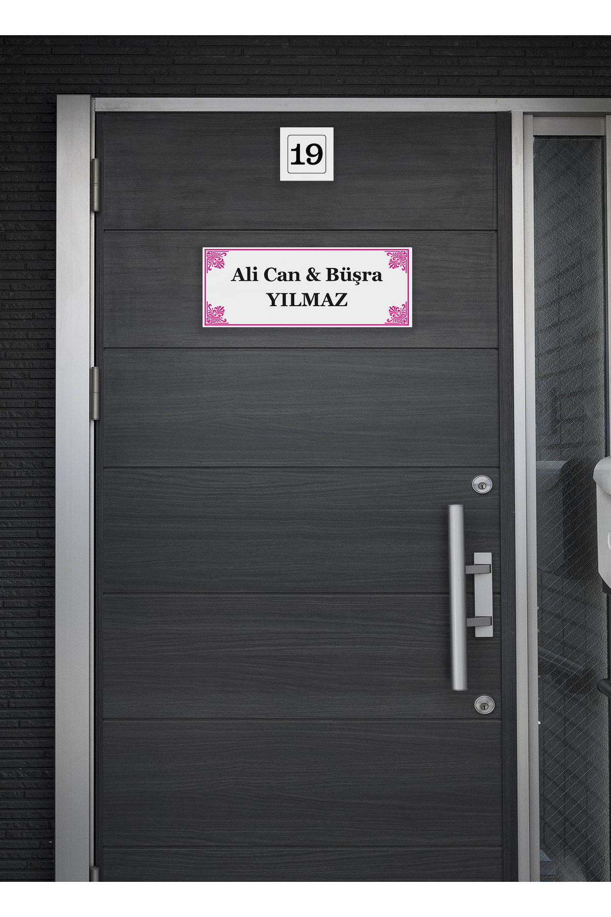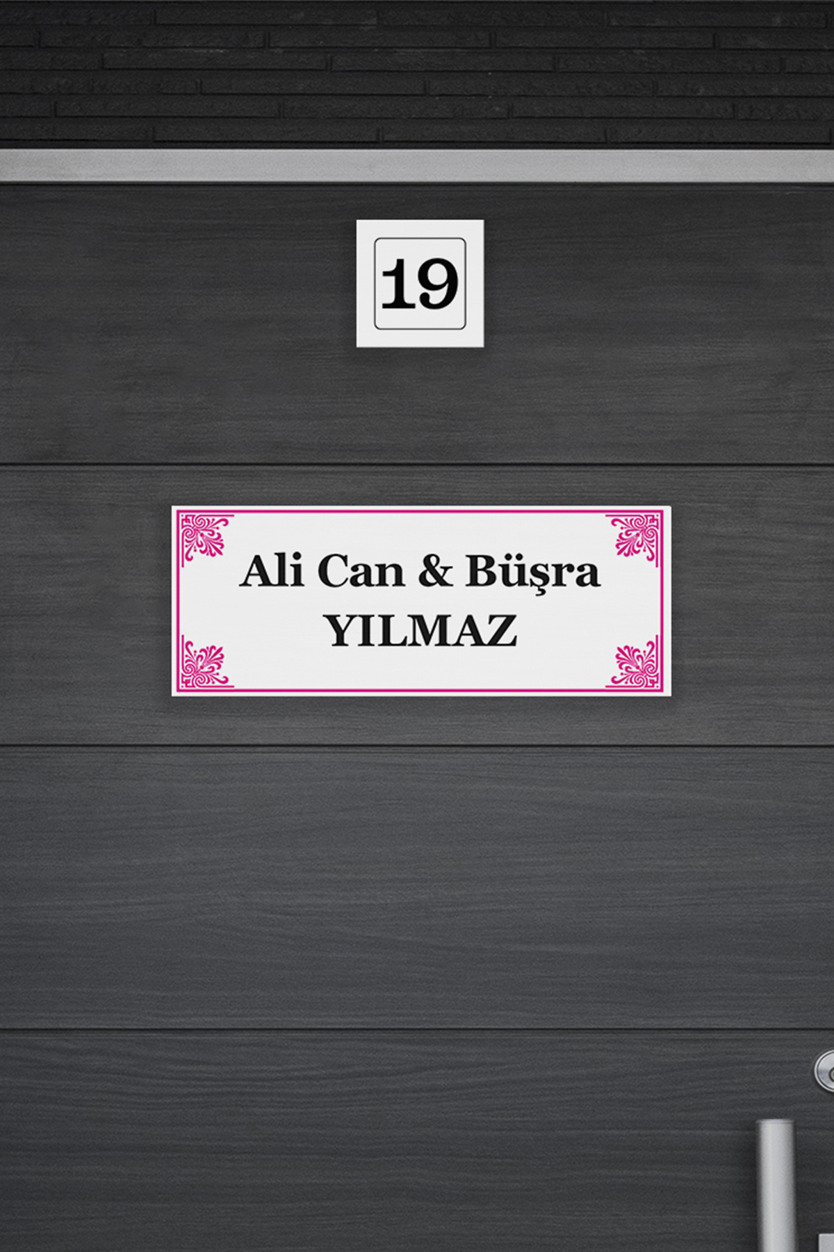 Şık Pembe Çerçeveli Kapı İsimlik & Numara Seti – Kapı isimliği