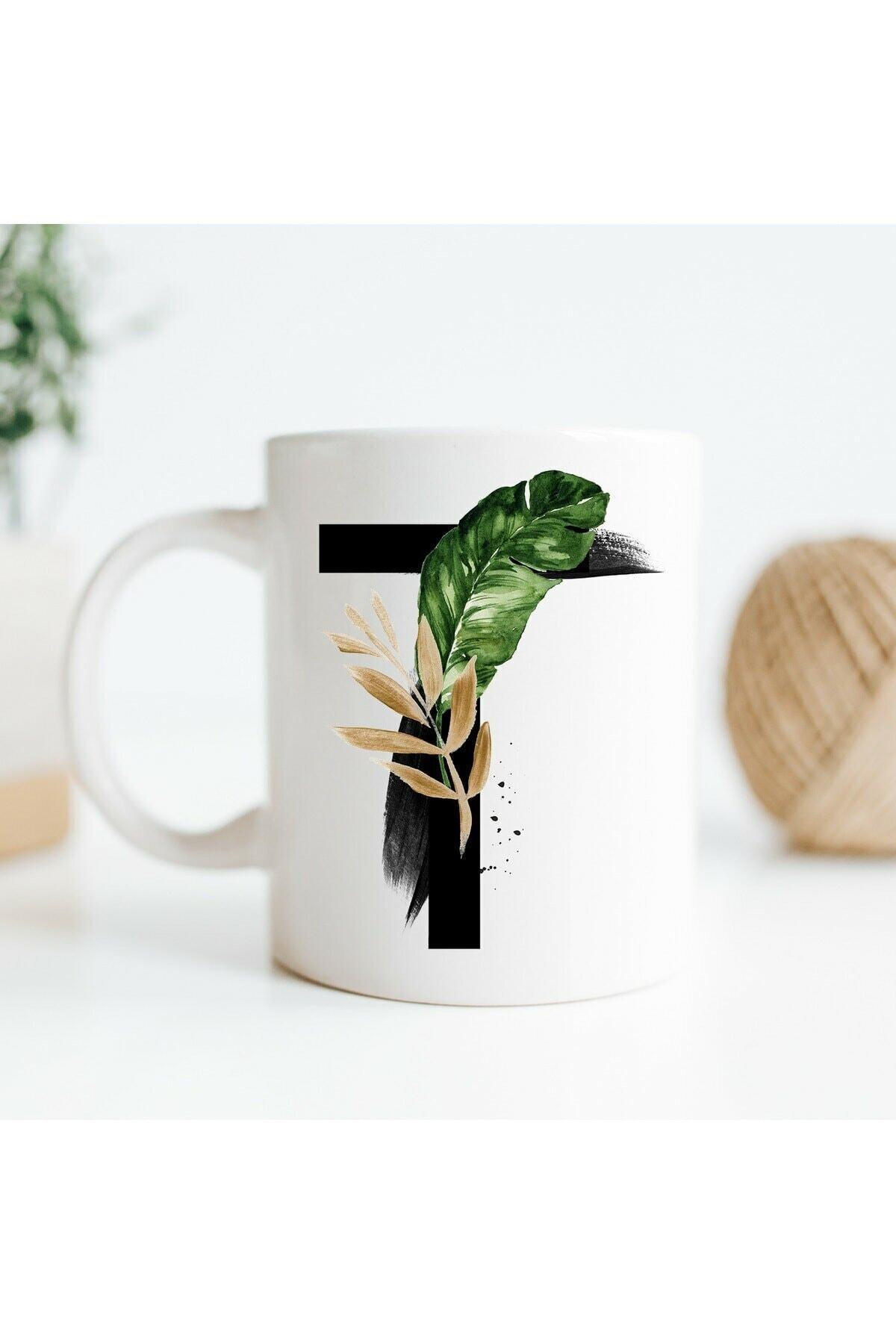 T Harfine Özel Baş Harf Tasarımlı Hediyelik Baskılı Kupa