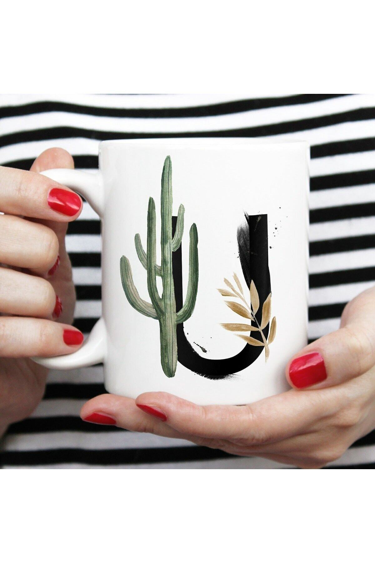 U Baş Harfine Özel Çiçek Tasarımlı Porselen Kupa Bardak -baskılı Kupa Bardak