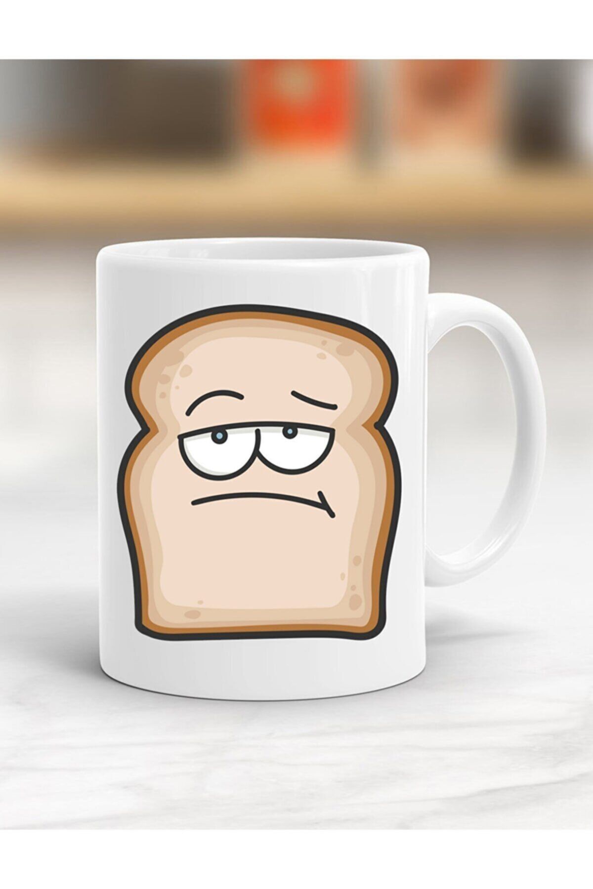 Unisex Beyaz Üzgün Surat Tost Ekmeği Baskılı Kupa Bardak